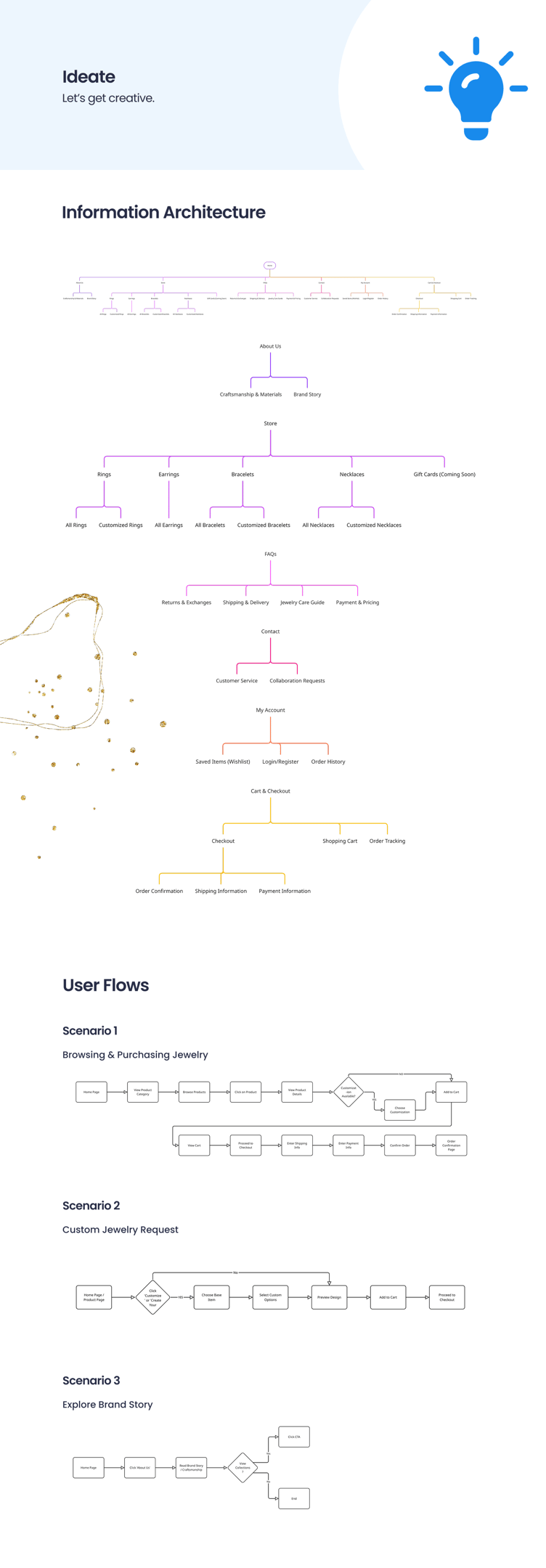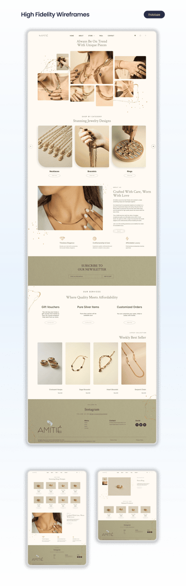 Redesign of a jewelry brand’s website to reflect its elegant, personalized identity and improve the shopping experience. The new design features intuitive navigation, a soft minimalist aesthetic, and custom jewelry options, creating a seamless, emotionally engaging journey for users across devices.