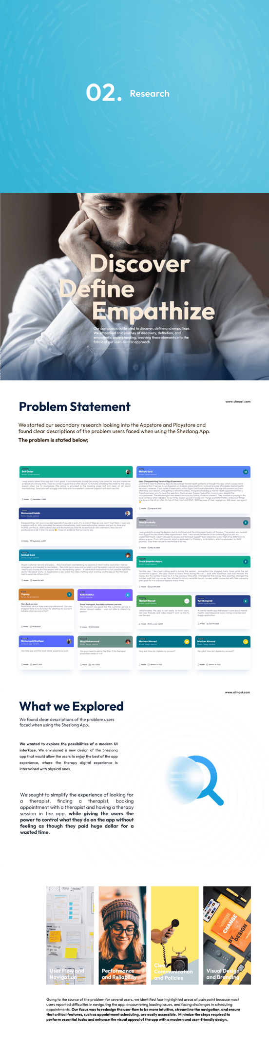 Reimagining and renovating Shezlong platform. Shezlong is the first online psychotherapy platform in Egypt and the MENA region. It brings online psychological therapy to anyone who struggles with the daily battle of their own mind.